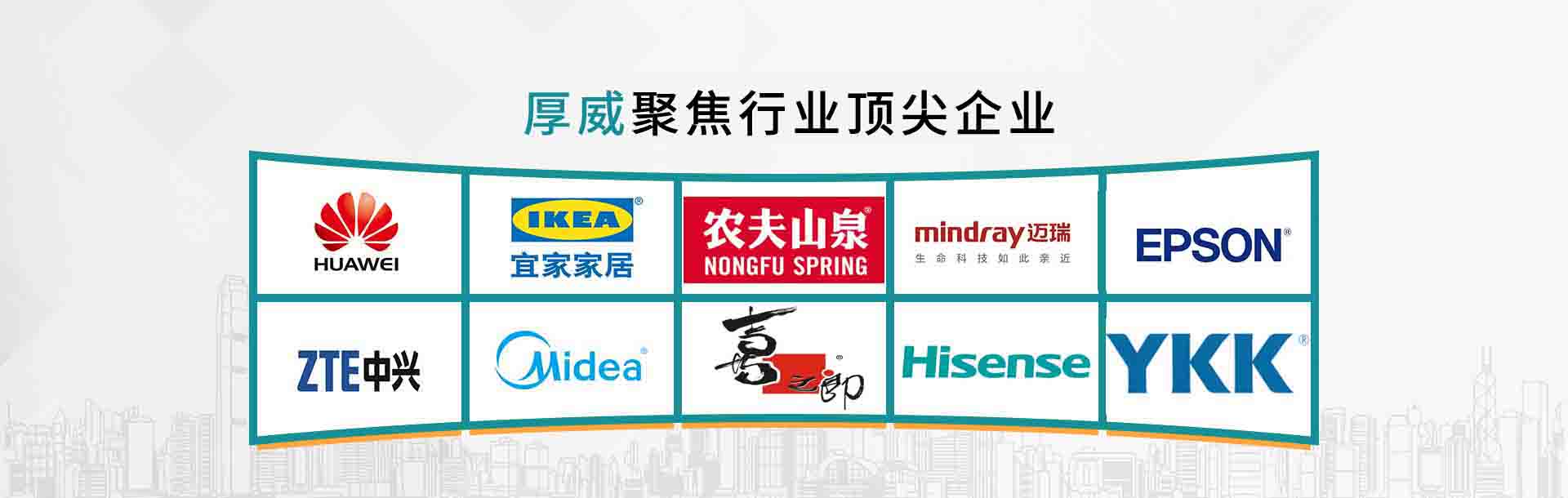 厚威集團(tuán)自創(chuàng)立以來(lái)一直從事研發(fā)、設(shè)計(jì)、生產(chǎn)和銷(xiāo)售瓦楞紙箱、紙棧板等瓦楞紙品包裝、珍珠棉(EPE)等輔助包裝材料,并致力于提供成套包裝產(chǎn)品,為客戶(hù)提供同步研發(fā)、一體化綜合包裝解決方案及相關(guān)增值服務(wù),發(fā)展至今已擁有瓦楞紙板、珍珠棉發(fā)泡及深加工、包裝、膠袋、吸塑等不同類(lèi)型生產(chǎn)線(xiàn)。二十余年間通過(guò)持續(xù)的研發(fā)投入和高效的生產(chǎn)管控,致力打造成為一家跨行業(yè)、多品種、多規(guī)格的瓦楞包裝紙箱類(lèi)標(biāo)桿企業(yè)。與華為、宜家、邁瑞、中興、美的等行業(yè)頂尖客戶(hù)形成了穩(wěn)定合作關(guān)系,系全國(guó)紙包裝行業(yè)50強(qiáng)企業(yè)。